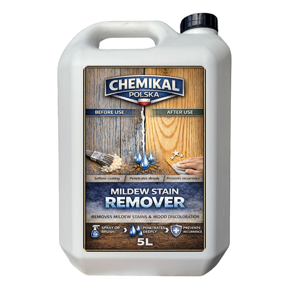 Přípravek na odstranění modrání dřeva CHEMIKAL POLSKA je účinné řešení pro odstranění modrání, skvrn a ztmavnutí dřeva vzniklých vlivem vlhkosti, působením hub nebo stárnutím materiálu. Obnovuje světlý, přirozený vzhled dřeva a připravuje povrch pro další úpravu nebo ochranu.